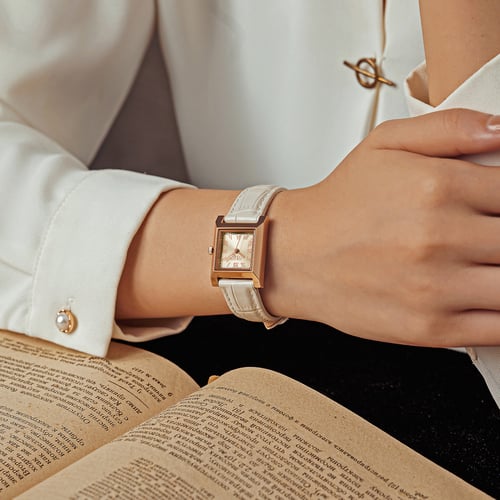 นาฬิกา Julius JA-1273 A สายเซรามิกสลับสแตนเลส สีขาว - โรสโกลด์